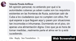 Una cubana residente en Moscú, que se identifica en Facebook como Yolanda Pineda Anfilova, criticó la tardía decisión de las autoridades cubanas.